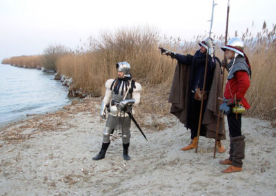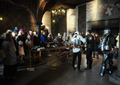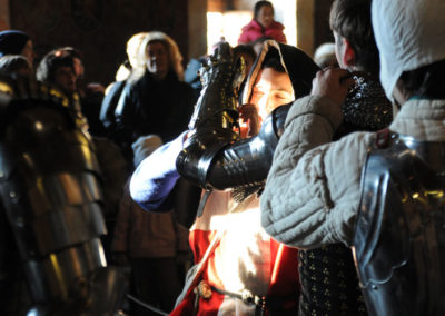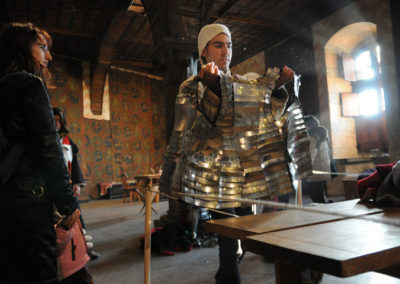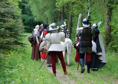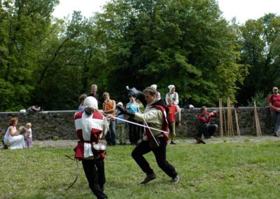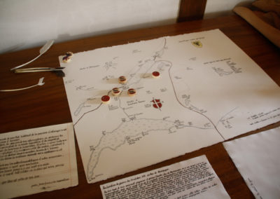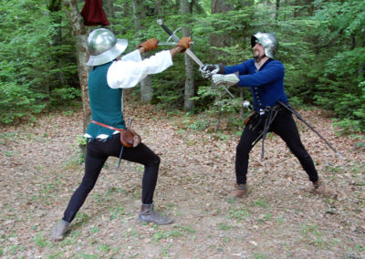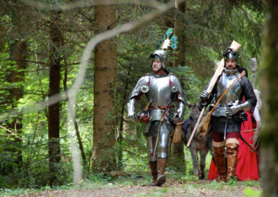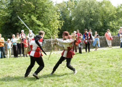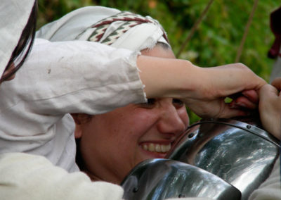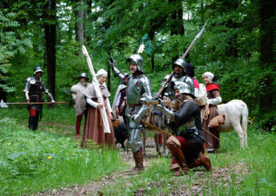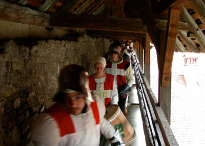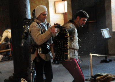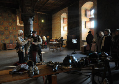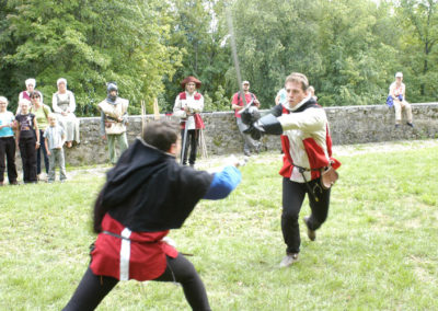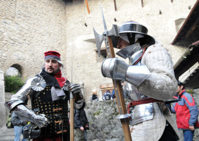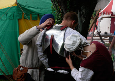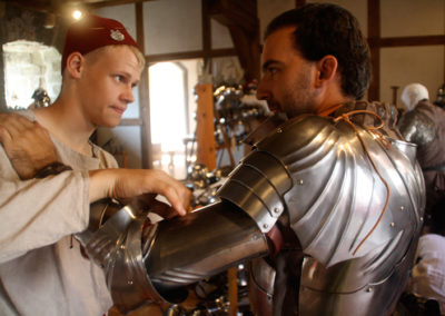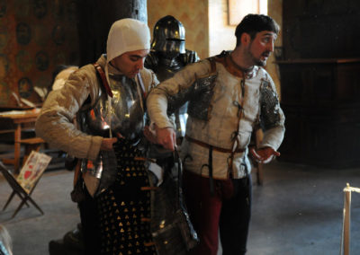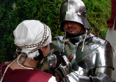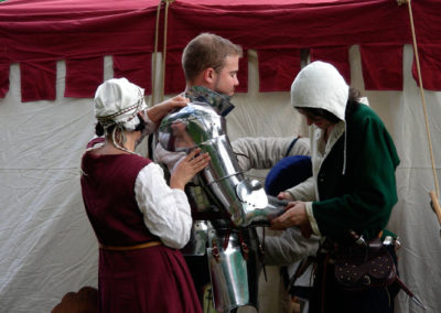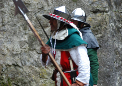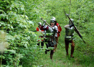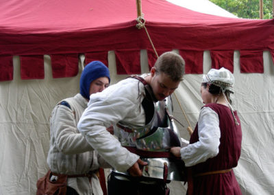 La Compagnie des 4 Lunes représente une garnison du XVe siècle. Un accent particulier est donc placé sur la vie militaire. Du simple soldat au bourgeois, tous font corps avec la garnison, au point même que chacun, y compris les gens de cuisine, peut être appelé à tout moment pour venir prêter main forte. Nous essayons de présenter cette part du moyen-âge avec pédagogie, c'est pourquoi différents modules peuvent être mis en place: